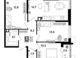 В продаже 3-комнатная квартира от застройщика! Мкр. «DOGMA PARK» г. Краснодар, Литер 17 Срок сдачи: 4 кв. 2027, общей площадью 68.6 кв.м., на 8 этаже.