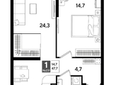 В продаже 1-комнатная квартира от застройщика! Мкр. «DOGMA PARK» г. Краснодар, Литер 19 Срок сдачи: 4 кв. 2027, общей площадью 47.4 кв.м., на 15 этаже.