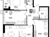 В продаже 3-комнатная квартира от застройщика! Мкр. «DOGMA PARK» г. Краснодар, Литер 19 Срок сдачи: 4 кв. 2027, общей площадью 69.3 кв.м., на 2 этаже.