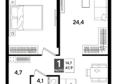 В продаже 1-комнатная квартира от застройщика! Мкр. «DOGMA PARK» г. Краснодар, Литер 19 Срок сдачи: 4 кв. 2027, общей площадью 47.1 кв.м., на 8 этаже.
