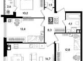 В продаже 3-комнатная квартира от застройщика! Мкр. «DOGMA PARK» г. Краснодар, Литер 19 Срок сдачи: 4 кв. 2027, общей площадью 68.4 кв.м., на 8 этаже.