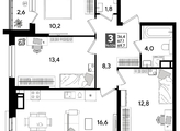 В продаже 3-комнатная квартира от застройщика! Мкр. «DOGMA PARK» г. Краснодар, Литер 19 Срок сдачи: 4 кв. 2027, общей площадью 68.2 кв.м., на 12 этаже.