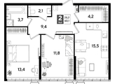 В продаже 2-комнатная квартира от застройщика! Мкр. «DOGMA PARK» г. Краснодар, Литер 20 Срок сдачи: 4 кв. 2027, общей площадью 60.1 кв.м., на 2 этаже.