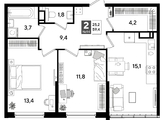 В продаже 2-комнатная квартира от застройщика! Мкр. «DOGMA PARK» г. Краснодар, Литер 20 Срок сдачи: 4 кв. 2027, общей площадью 59.4 кв.м., на 13 этаже.