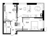 В продаже 2-комнатная квартира от застройщика! Мкр. «DOGMA PARK» г. Краснодар, Литер 18 Срок сдачи: 4 кв. 2027, общей площадью 53.7 кв.м., на 4 этаже.