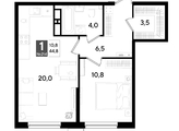 В продаже 1-комнатная квартира от застройщика! Мкр. «DOGMA PARK» г. Краснодар, Литер 18 Срок сдачи: 4 кв. 2027, общей площадью 44.8 кв.м., на 13 этаже.