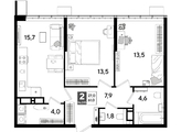 В продаже 2-комнатная квартира от застройщика! Мкр. «DOGMA PARK» г. Краснодар, Литер 18 Срок сдачи: 4 кв. 2027, общей площадью 61 кв.м., на 16 этаже.