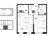 В продаже 1-комнатная квартира от застройщика! Мкр. «DOGMA PARK» г. Краснодар, Литер 22 Срок сдачи: 4 кв. 2027, общей площадью 44.4 кв.м., на 5 этаже.