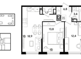 В продаже 2-комнатная квартира от застройщика! Мкр. «DOGMA PARK» г. Краснодар, Литер 22 Срок сдачи: 4 кв. 2027, общей площадью 57 кв.м., на 12 этаже.
