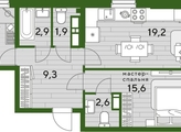 В продаже 2-комнатная квартира от застройщика! Мкр. «DOGMA PARK» г. Краснодар, Литер 22 Срок сдачи: 4 кв. 2027, общей площадью 65.8 кв.м., на 15 этаже.