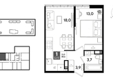 В продаже 1-комнатная квартира от застройщика! Мкр. «DOGMA PARK» г. Краснодар, Литер 22 Срок сдачи: 4 кв. 2027, общей площадью 38.6 кв.м., на 16 этаже.