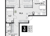 Срок сдачи: 2 кв. 2026, общей площадью 92.7 кв.м., на 3 этаже.