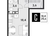 Срок сдачи: 2 кв. 2026, общей площадью 25.6 кв.м., на 7 этаже.