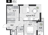 Срок сдачи: 4 кв. 2025, общей площадью 61.5 кв.м., на 2 этаже.