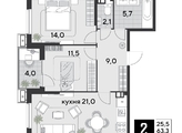 Срок сдачи: 1 кв. 2026, общей площадью 67.3 кв.м., на 6 этаже.
