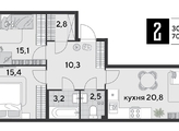 Срок сдачи: 4 кв. 2025, общей площадью 70.1 кв.м., на 2 этаже.
