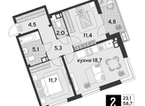 Срок сдачи: 1 кв. 2026, общей площадью 63.5 кв.м., на 6 этаже.