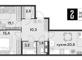 Срок сдачи: 4 кв. 2025, общей площадью 69.4 кв.м., на 10 этаже.