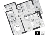 Срок сдачи: 1 кв. 2026, общей площадью 63.2 кв.м., на 11 этаже.