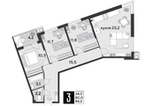 Срок сдачи: 4 кв. 2025, общей площадью 84.2 кв.м., на 2 этаже.