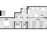 Срок сдачи: 1 кв. 2026, общей площадью 75.1 кв.м., на 7 этаже.