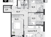Срок сдачи: 4 кв. 2025, общей площадью 80.2 кв.м., на 2 этаже.
