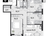 Срок сдачи: 1 кв. 2026, общей площадью 79.4 кв.м., на 13 этаже.