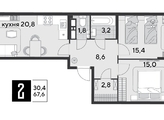 Срок сдачи: 1 кв. 2026, общей площадью 67.6 кв.м., на 15 этаже.