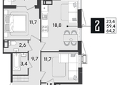 Срок сдачи: 4 кв. 2025, общей площадью 64.2 кв.м., на 18 этаже.