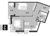 Срок сдачи: 4 кв. 2025, общей площадью 63 кв.м., на 18 этаже.