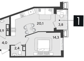 Срок сдачи: 4 кв. 2025, общей площадью 48.5 кв.м., на 18 этаже.