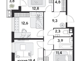 Срок сдачи: 4 кв. 2025, общей площадью 85.1 кв.м., на 9 этаже.