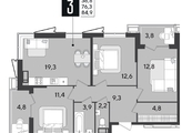Срок сдачи: 4 кв. 2025, общей площадью 84.9 кв.м., на 18 этаже.
