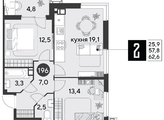 Срок сдачи: 2 кв. 2026, общей площадью 62.6 кв.м., на 4 этаже.