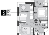 Срок сдачи: 2 кв. 2026, общей площадью 59.5 кв.м., на 5 этаже.