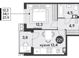 Срок сдачи: 2 кв. 2026, общей площадью 37.9 кв.м., на 7 этаже.