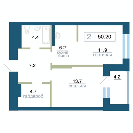 Общая площадь квартиры — 50.2 кв.м. Тип дома — монолит-кирпич. Компания-застройщик — Сибиряк.