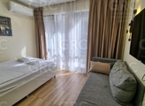 Общая площадь к продаже 25 м. кв. Апартаменты студийного типа с балконом! В современном стильном решении, мебелью и техникой. Рядом бассейн. Вид на парковую территорию.