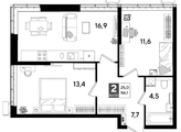 В продаже 2-комнатная квартира от застройщика! Мкр. «DOGMA PARK» г. Краснодар, Литер 16 Срок сдачи: 4 кв. 2027, общей площадью 54.1 кв.м., на 2 этаже.