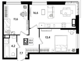 В продаже 2-комнатная квартира от застройщика! Мкр. «DOGMA PARK» г. Краснодар, Литер 20 Срок сдачи: 4 кв. 2027, общей площадью 53.5 кв.м., на 11 этаже.