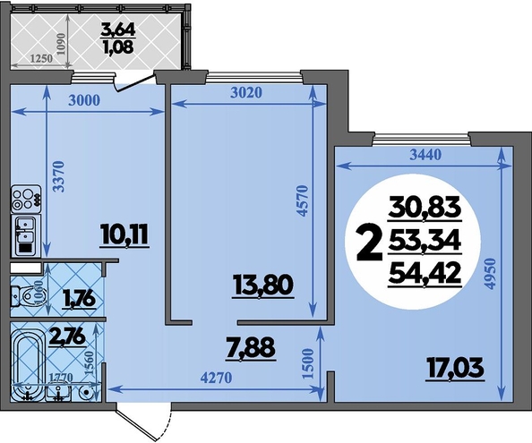 Общая площадь квартиры — 54.42 кв.м. Тип дома — панельный. Компания-застройщик — ВКБ-Новостройки.