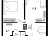 В продаже 1-комнатная квартира от застройщика! Мкр. «DOGMA PARK» г. Краснодар, Литер 19 Срок сдачи: 4 кв. 2027, общей площадью 47.2 кв.м., на 14 этаже.