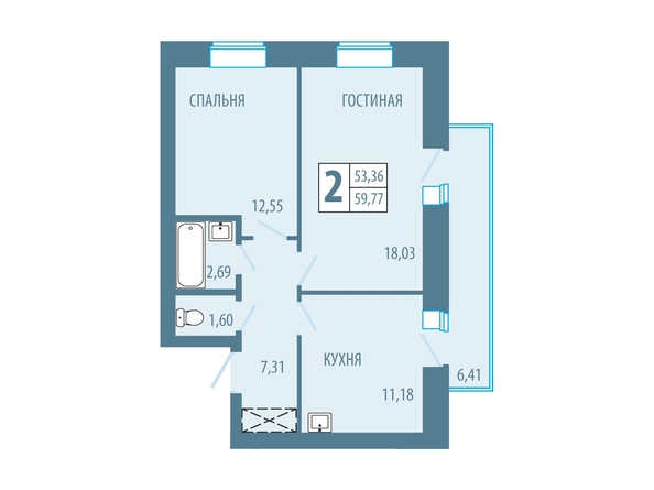 Общая площадь квартиры — 59.77 кв.м. Тип дома — кирпичный. Компания-застройщик — СЗ СК ЭкономЖилСтрой.