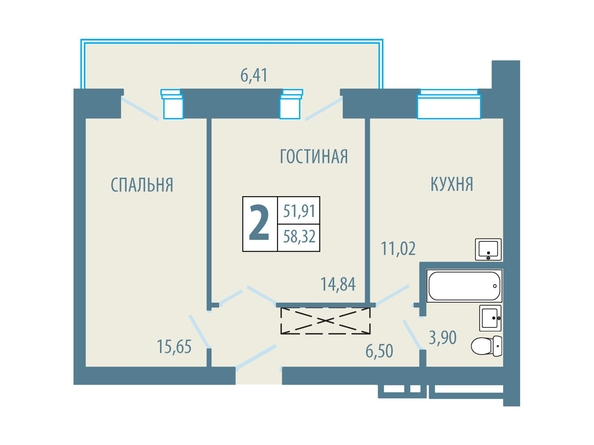 Общая площадь квартиры — 58.32 кв.м. Тип дома — кирпичный. Компания-застройщик — СЗ СК ЭкономЖилСтрой.