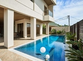 Во дворе дома Вы найдете бассейн с подогревом, подсветкой и аттракционами, что позволит Вам комфортно наслаждаться отдыхом и развлечениями прямо у себя дома. Также во дворе выполнено ландшафтное озеленение с очень красивой подсветкой, что создает атмосферу уюта и гармонии.