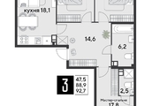 Срок сдачи: 4 кв. 2025, общей площадью 92.7 кв.м., на 4 этаже.