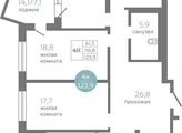 Общая площадь квартиры — 123.9 кв.м. Тип дома — монолит-кирпич. Компания-застройщик — ГК СТМ.