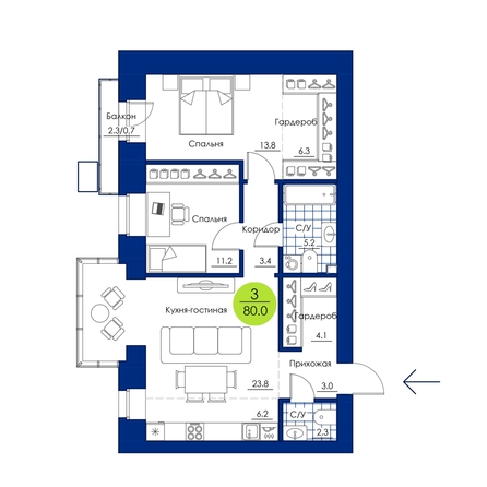 Эта просторная 3-комнатная квартира подойдет семьям, ценящим комфорт и функциональность. Продуманное пространство разделено на две равные части. Одна их них – приватная, тут мастер-спальня с собственным гардеробом и французским балконом, детская комната и большой семейный санузел. А вторая часть – это место для встреч с друзьями и семейного отдыха. Просторная и светлая кухня-гостиная украшена видовым витражным эркером. В коридоре большая гардеробная для верхней одежды и гостевой санузел для максимального удобства и обеспечения порядка. Все окна квартиры выходят в сторону природного «Вита-Парка» с многолетними деревьями.