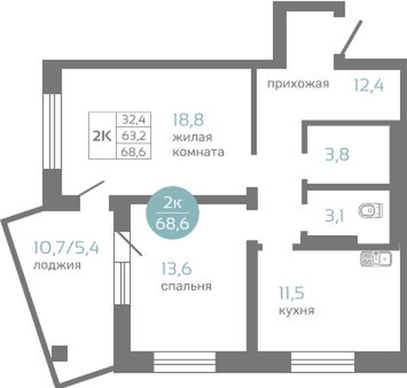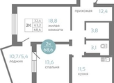 Общая площадь квартиры — 68.6 кв.м. Тип дома — монолит-кирпич. Компания-застройщик — ГК СТМ.