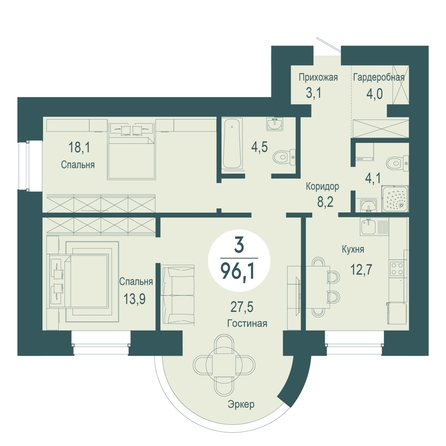 Продам 3-комнатную 96.1 кв.м. 2/17 этаж, кирпичный, Красноярск, Авиаторов ул, 18.